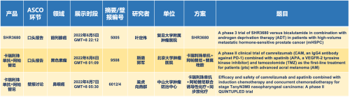 卡瑞利珠单抗联合AG真人平台医药的另一款创新药法米替尼在甲状腺癌和结直肠癌领域有2项研究被接收为壁报,另有卡瑞利珠单抗联合化疗的4项研究在肺癌、结直肠癌、头颈癌和阴茎癌领域的研究被接收为5份壁报。