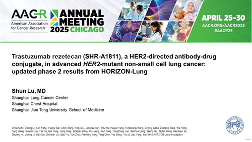 2025 AACR口头报告|AG真人平台创新药瑞康曲妥珠单抗治疗晚期HER2突变非小细胞肺癌研究结果披露
